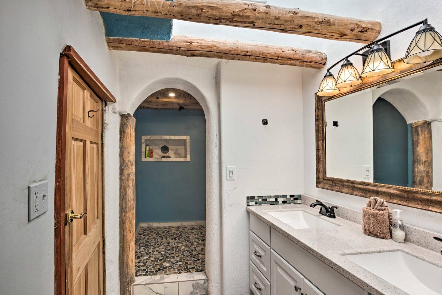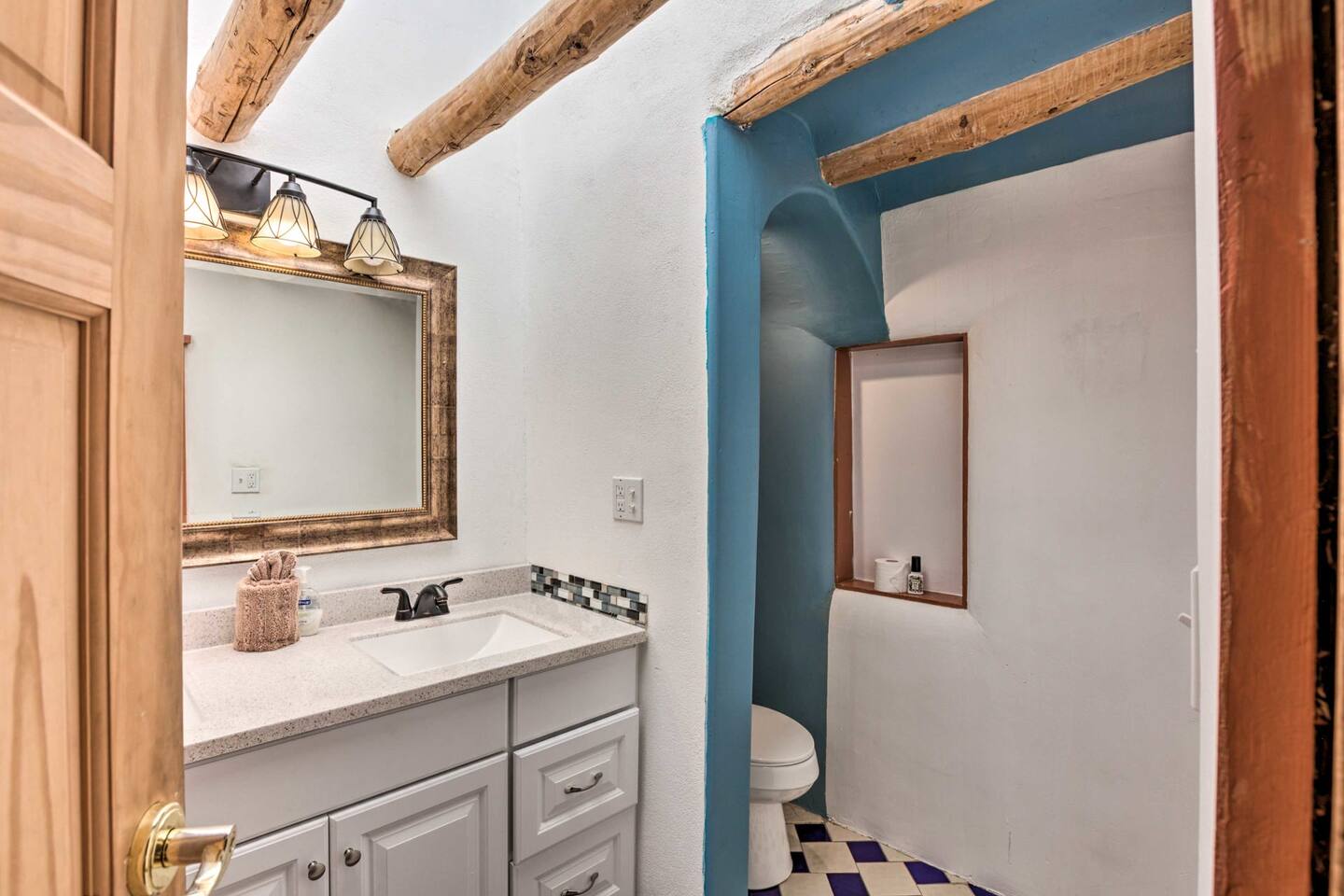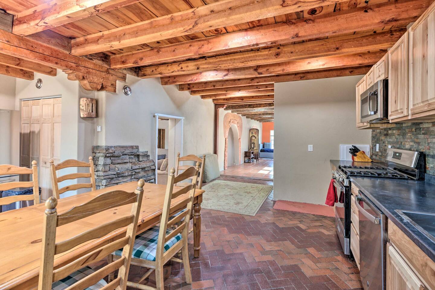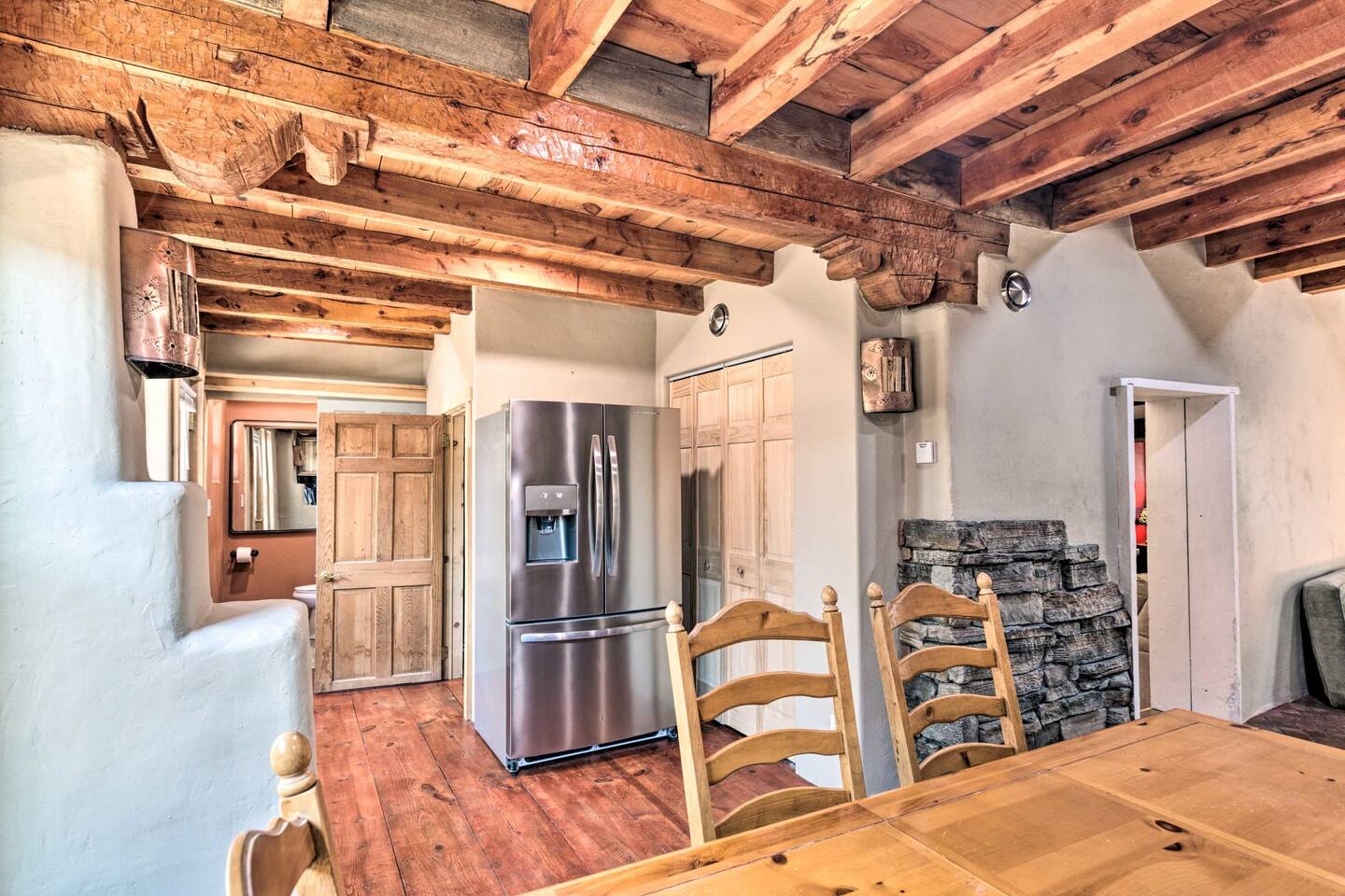 Experience Taos like a local in this 2-bedroom, 1.5-bath adobe home. With 18-inch thick walls and an original kiva fireplace crafted by a renowned Taos ceramic artist, this fully renovated rental offers oversized rooms and a fully equipped kitchen. Located less than 2 miles from Taos Plaza and the Downtown Historic District, you'll have easy access to outdoor recreation, restaurants, museums, and art. Enjoy the charm and convenience of this unique New Mexico destination.
