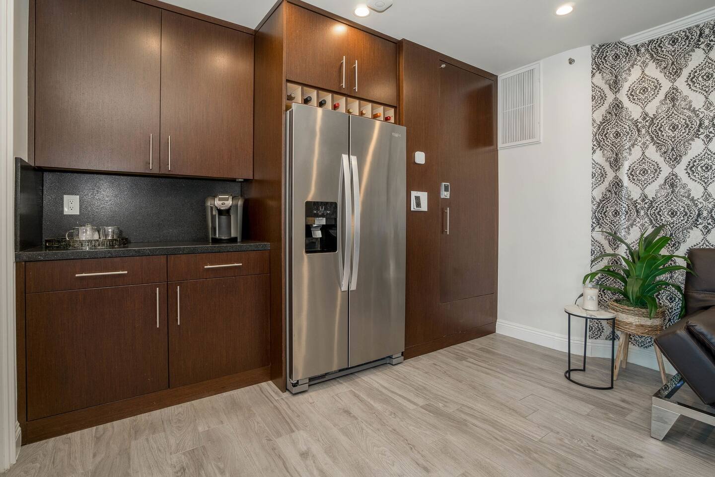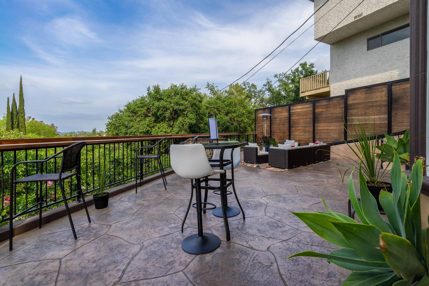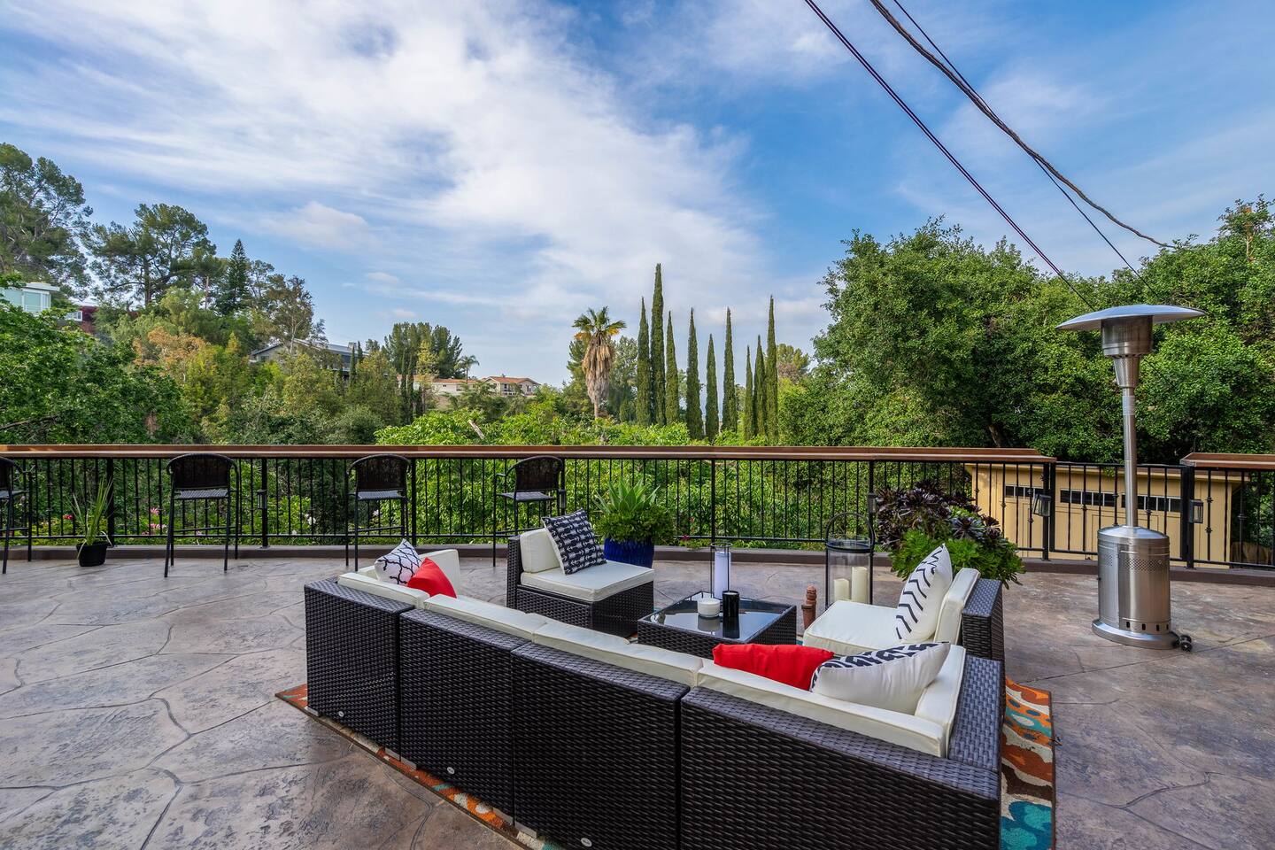 VIEWS-VIEWS! Welcome to our lower unit, perched high atop the San Fernando Valley and set amongst the lush mountains of Woodland Hills. This unit offers you a peaceful and private retreat, providing stunning panoramic views. You will be blown away by the eye-catching and inviting large deck with endless views and gorgeous sunsets. Enjoy a morning coffee or an evening cocktail while sitting at the deck-long built-in bar with sweeping views of the city below.