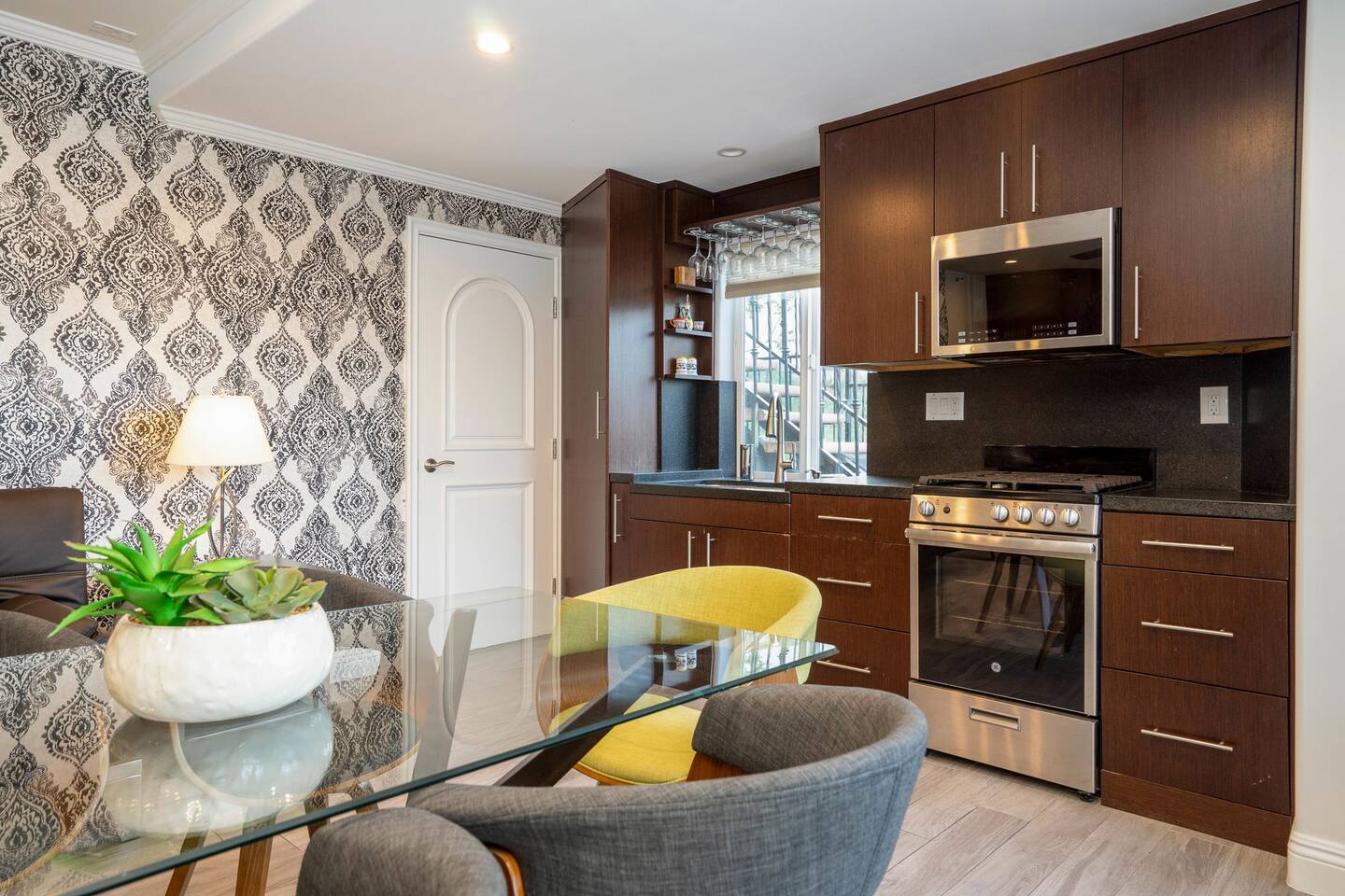 It has a full Master Bedroom with ensuite bath, Dining Area, kitchen, and separate laundry area with an additional 3/4 bath! Basement/Lower-Level Unit: This property is located on the lower level of the building, which may result in reduced natural light compared to upper units. Noise Levels: Guests might hear some noise from the upper floors due to the property's location. No Private Entrance: The entrance to the property is shared with other residents in the building. Limited Outdoor Space: There may be limited access to outdoor areas, such as patios or yards, compared to other units in the complex. Parking: Parking is available on the street or designated spots, but it might be limited depending on the time of day.