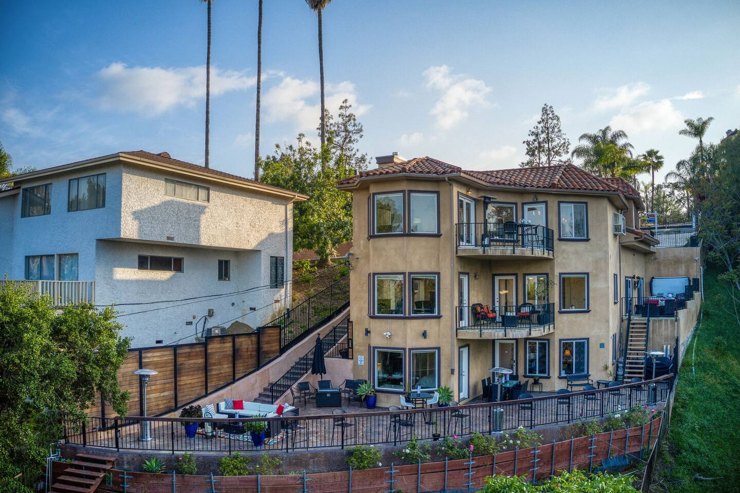 The entrance is private and gated located on the property's east side, making it easily accessible through the stairs. The check in day you will receive the access code to enter in the smart lock
