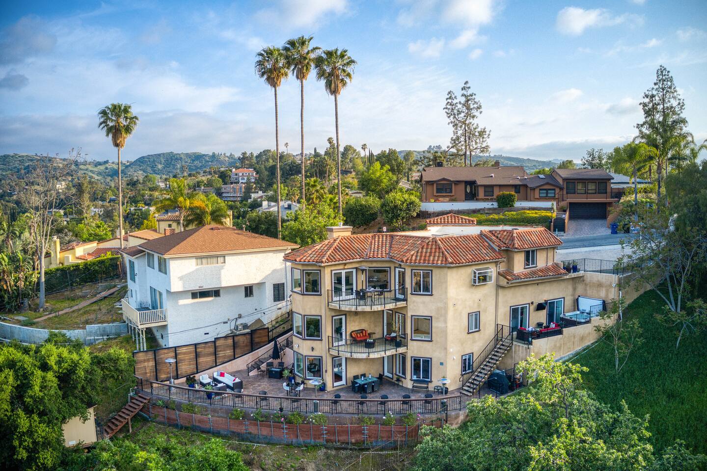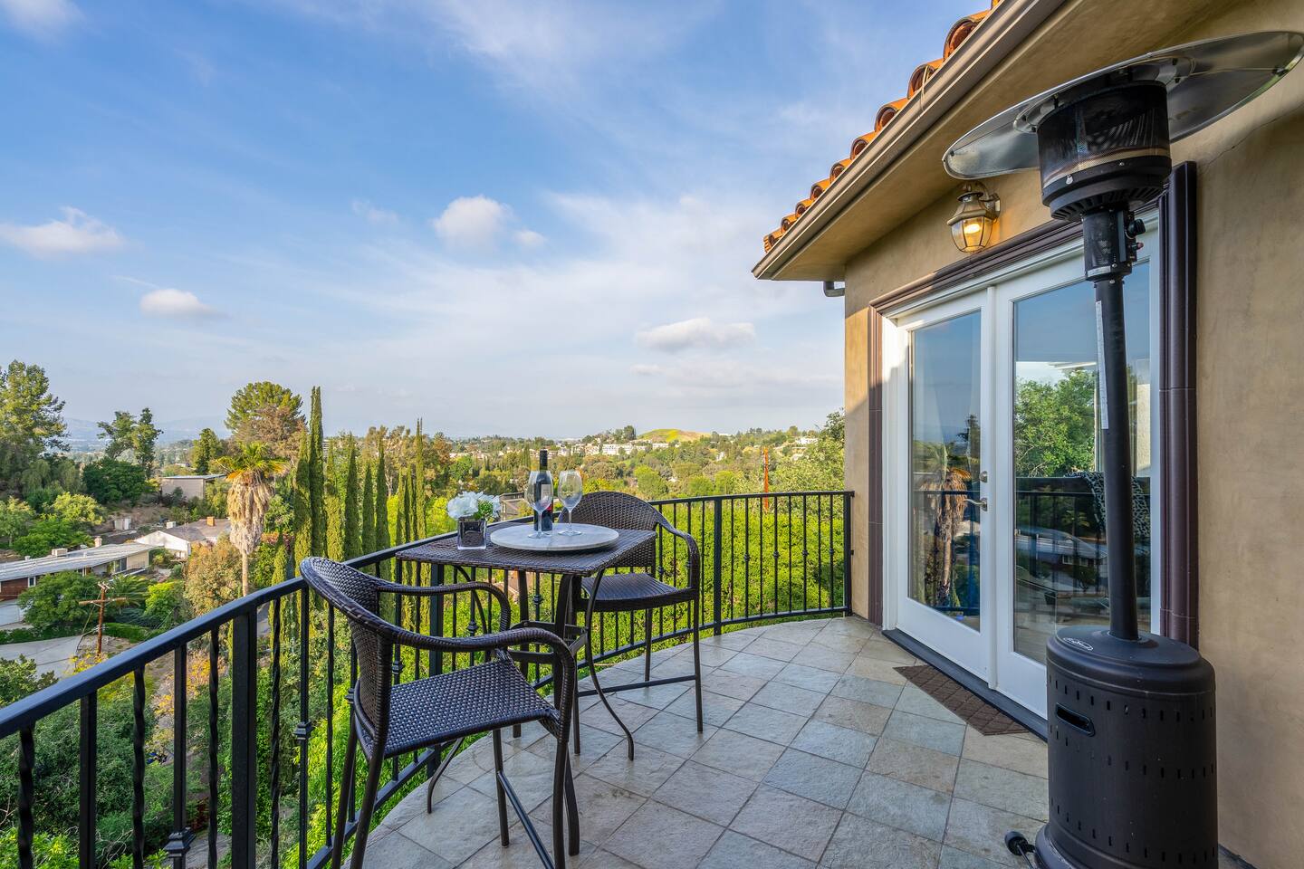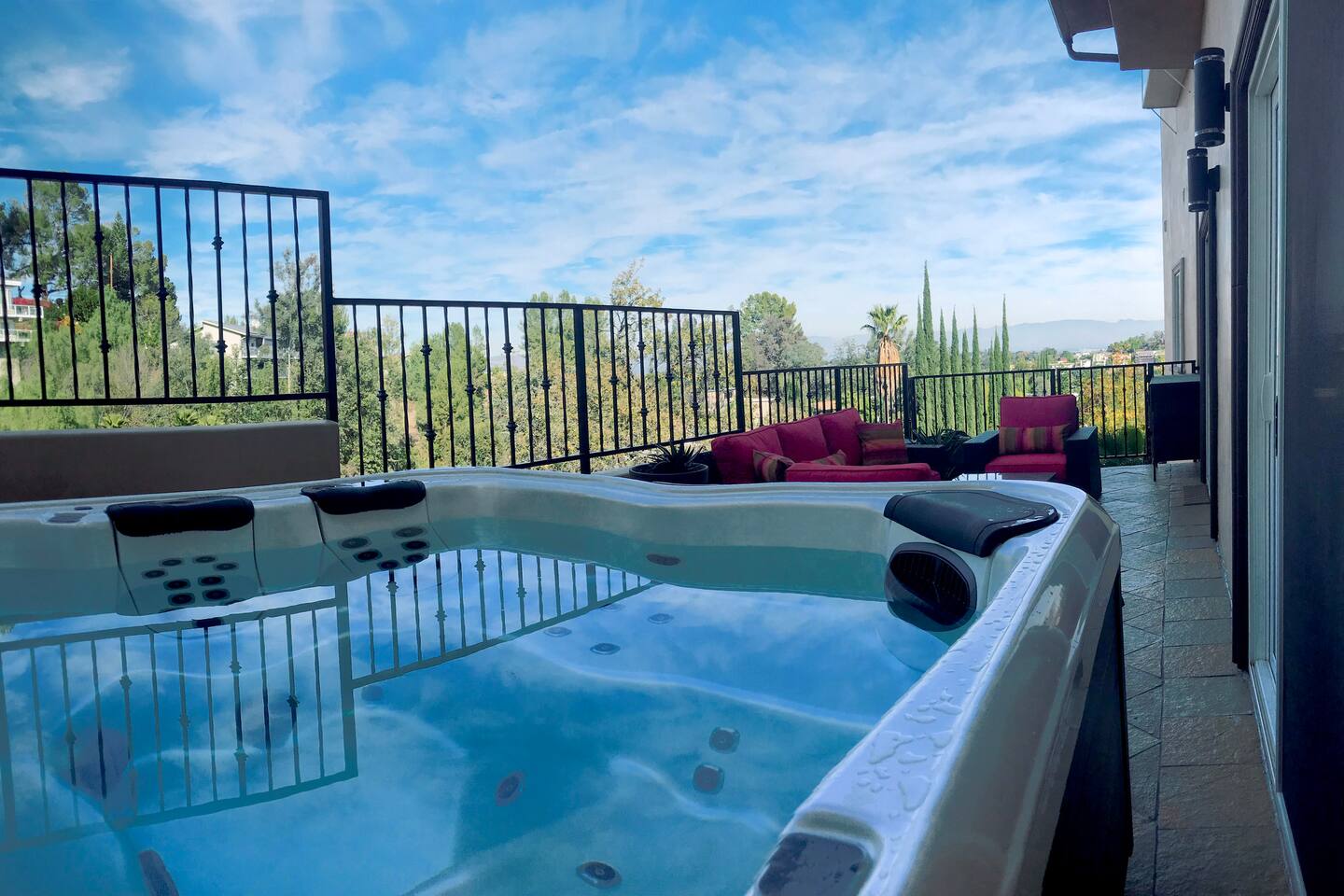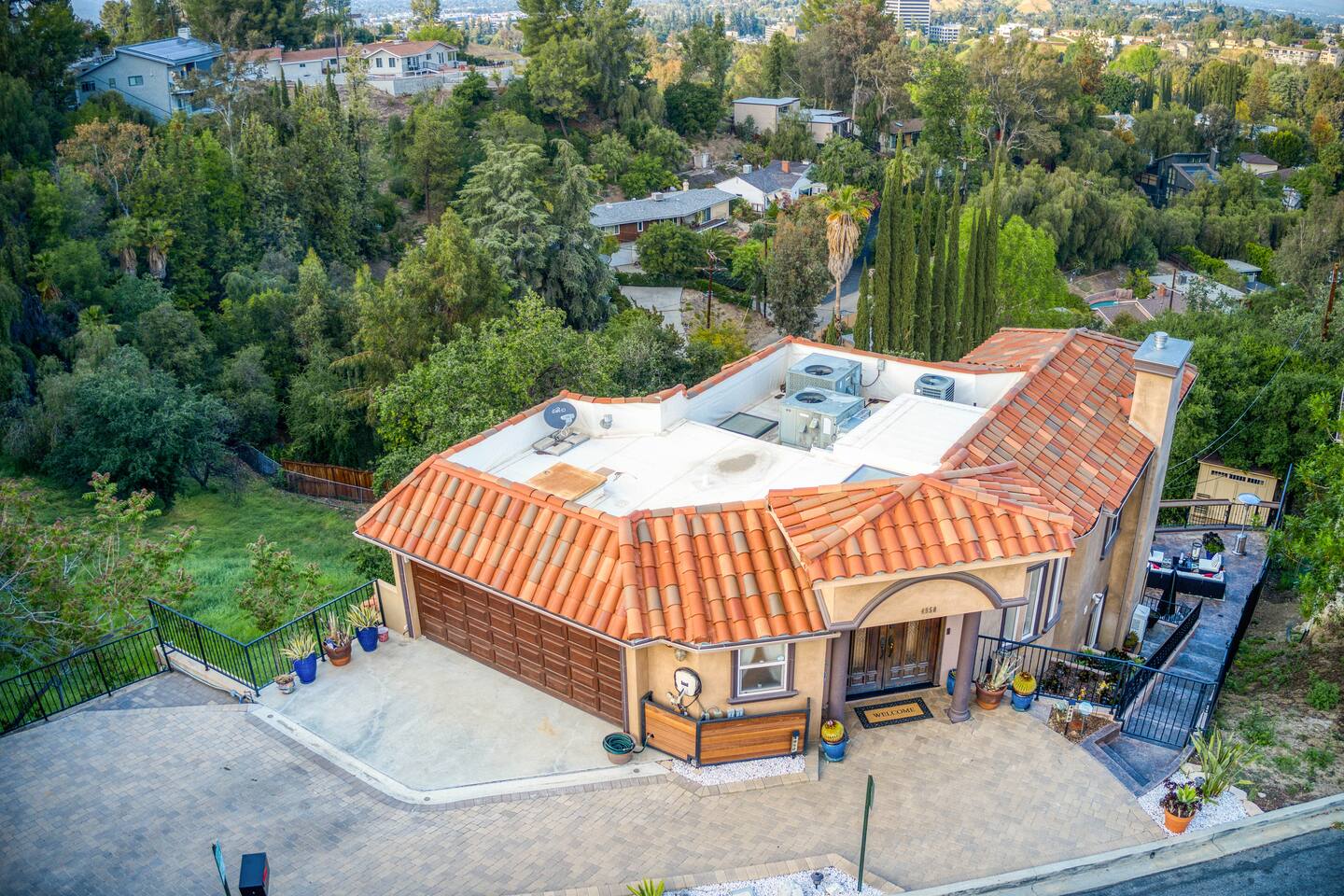 VIEWS-VIEWS!!! Welcome to this Spanish Style luxurious & unique property perched high atop the San Fernando Valley & set amongst the lush mountains of Woodland Hills. Come enjoy endless views and gorgeous sunsets from various decks or the hot tub, throughout this amazing property chosen by celebrities and influencers. The house is fully equipped to be your home-away-from-home. Although shops and restaurants are only a 1 mile drive away, the area feels peaceful and secluded.