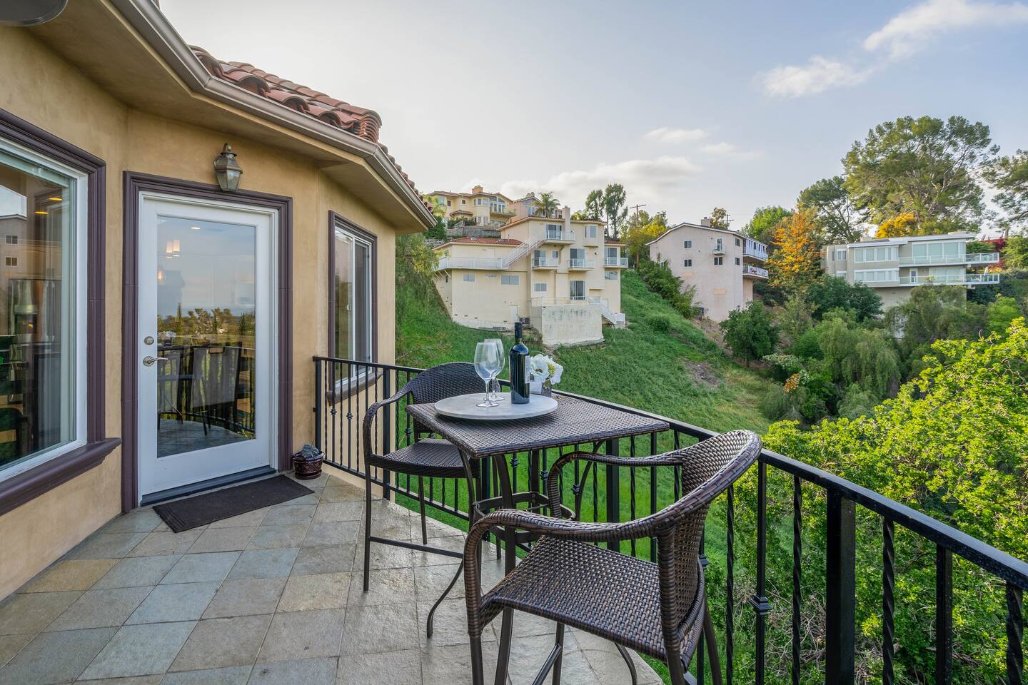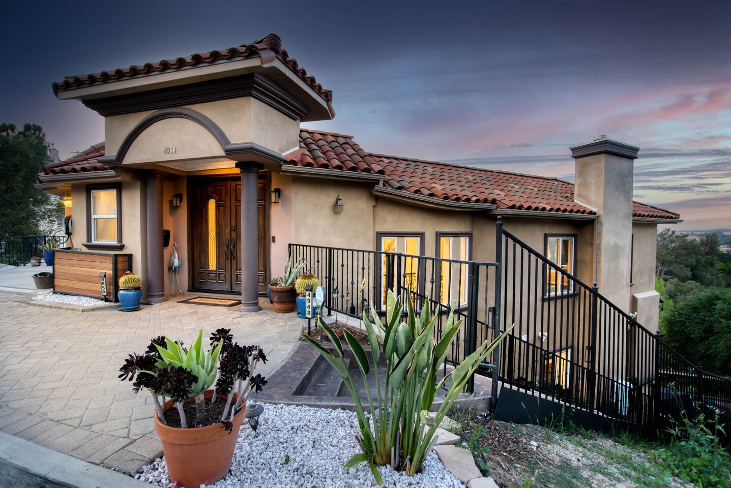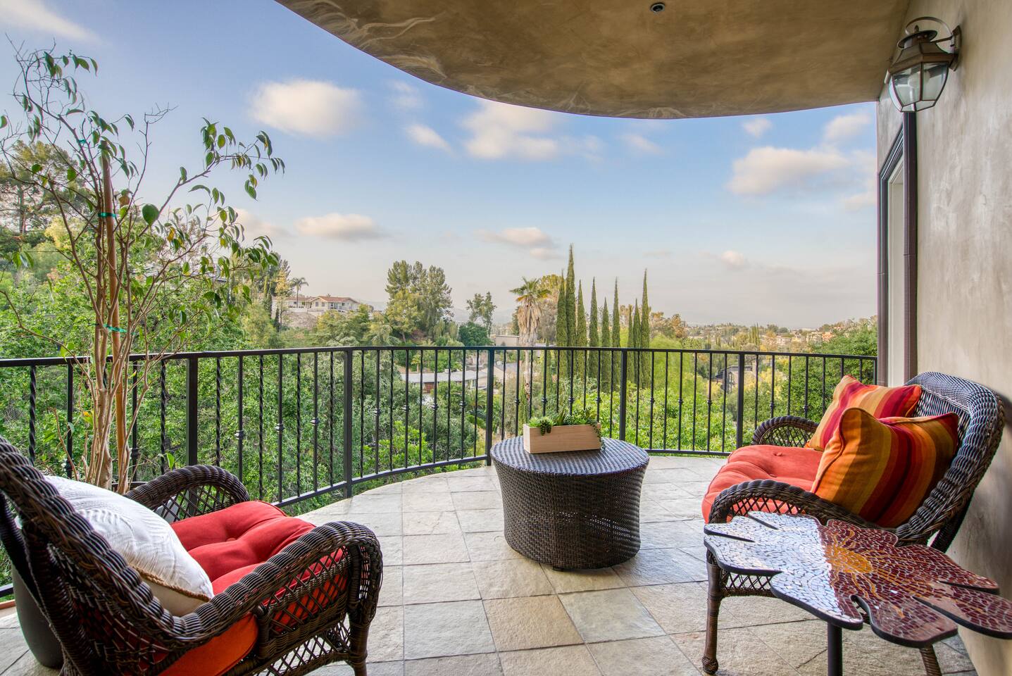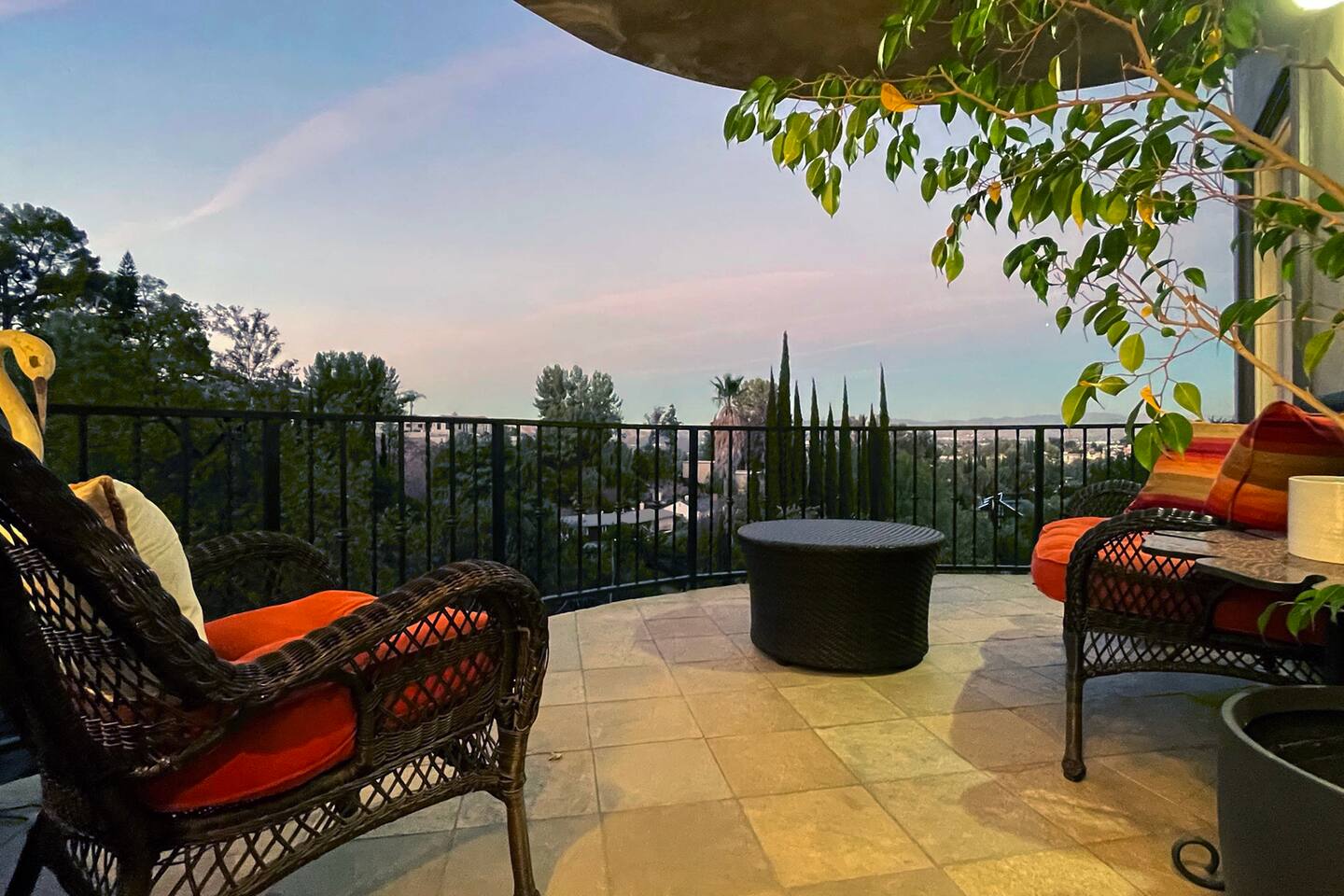 VIEWS-VIEWS!!! Welcome to this Spanish Style luxurious & unique property perched high atop the San Fernando Valley & set amongst the lush mountains of Woodland Hills. Come enjoy endless views and gorgeous sunsets from various decks or the hot tub, throughout this amazing property chosen by celebrities and influencers. The house is fully equipped to be your home-away-from-home. Although shops and restaurants are only a 1 mile drive away, the area feels peaceful and secluded.