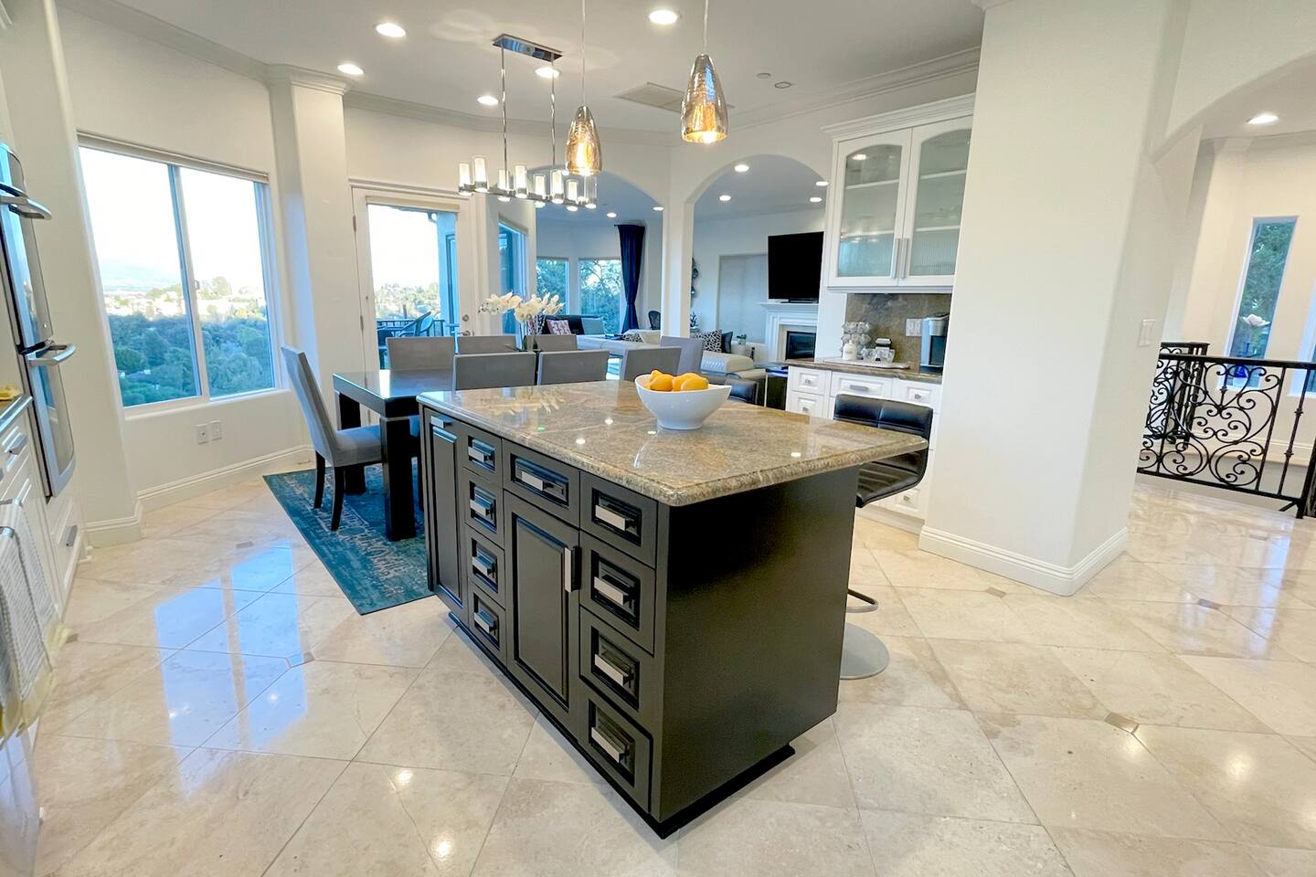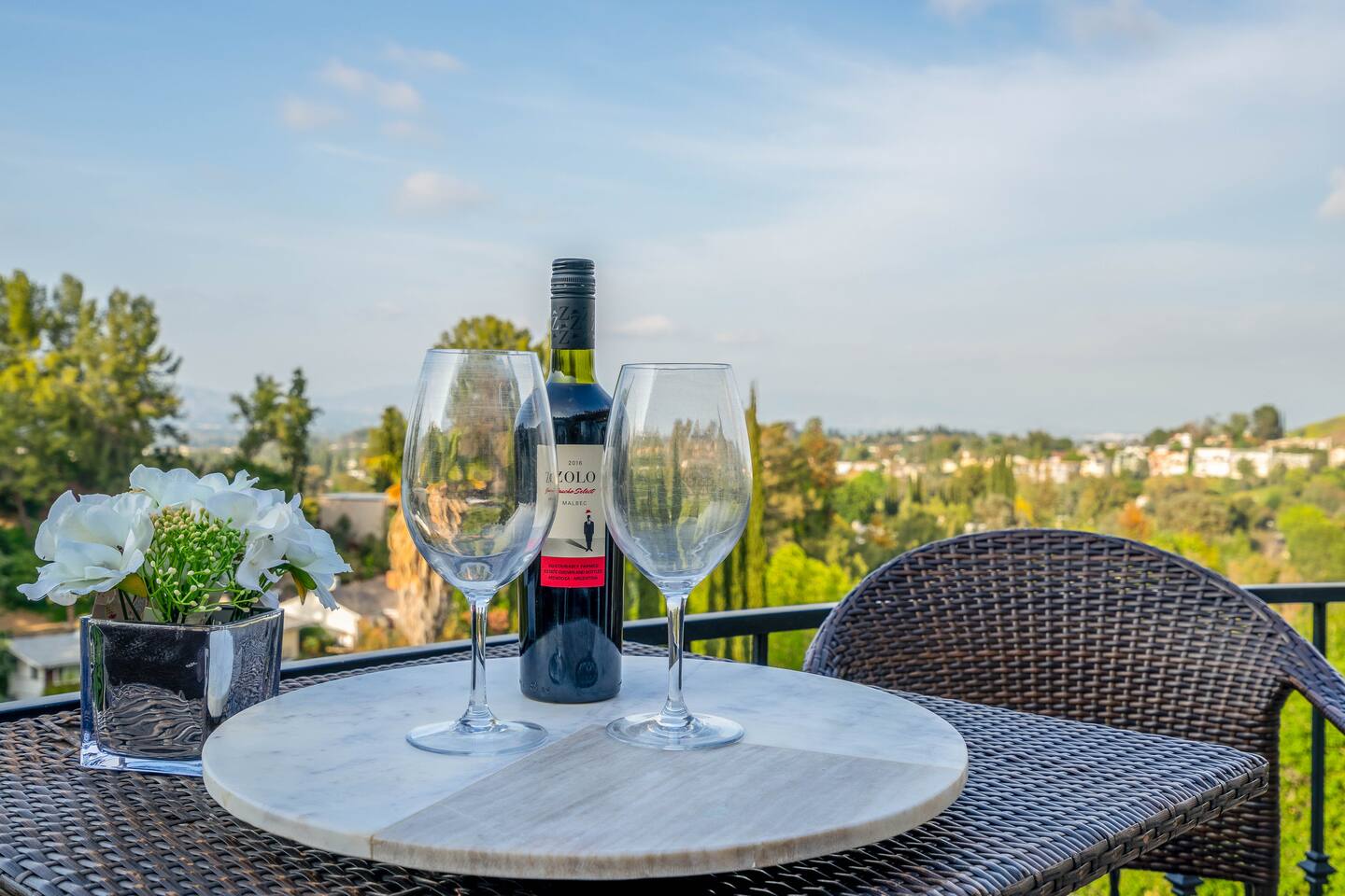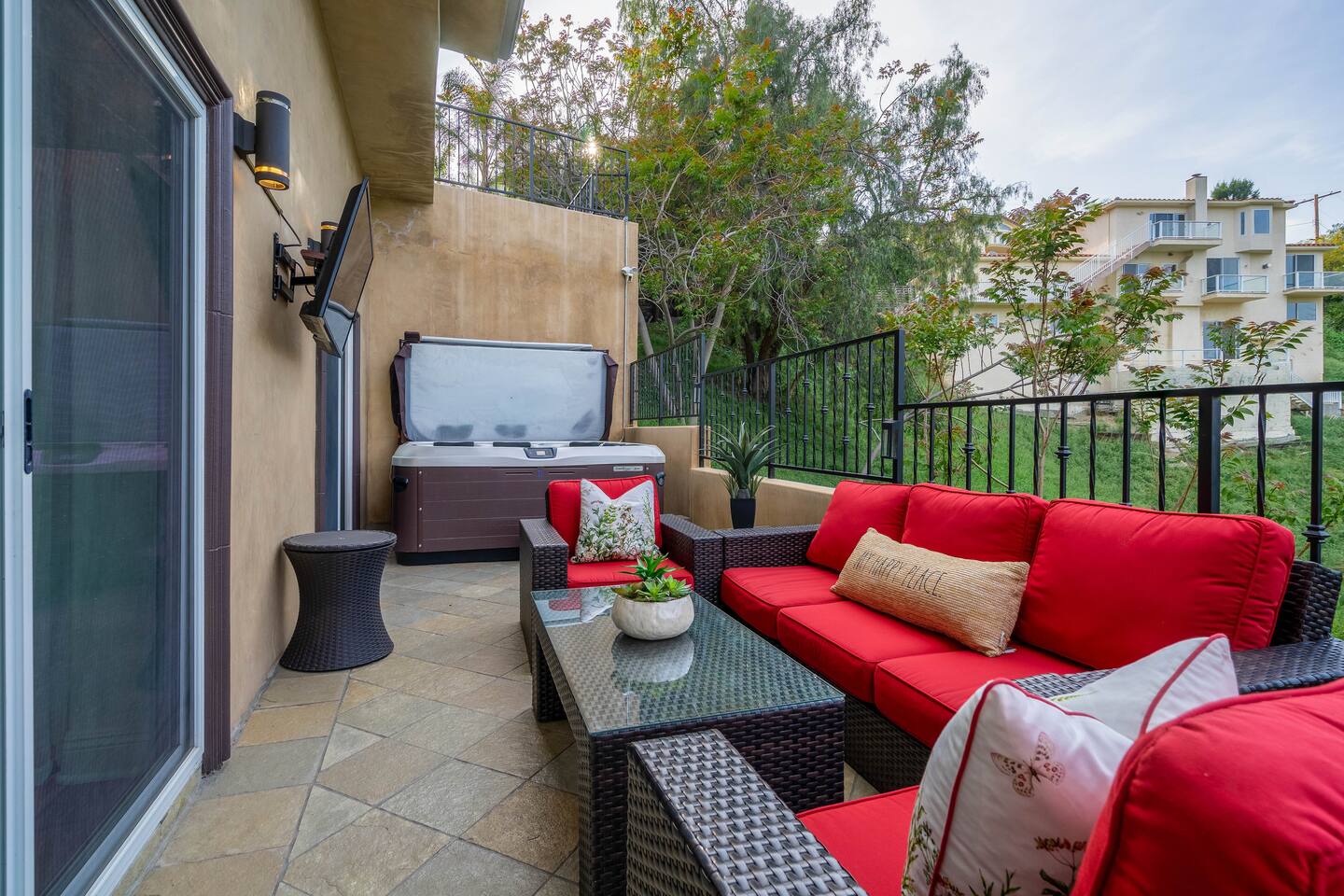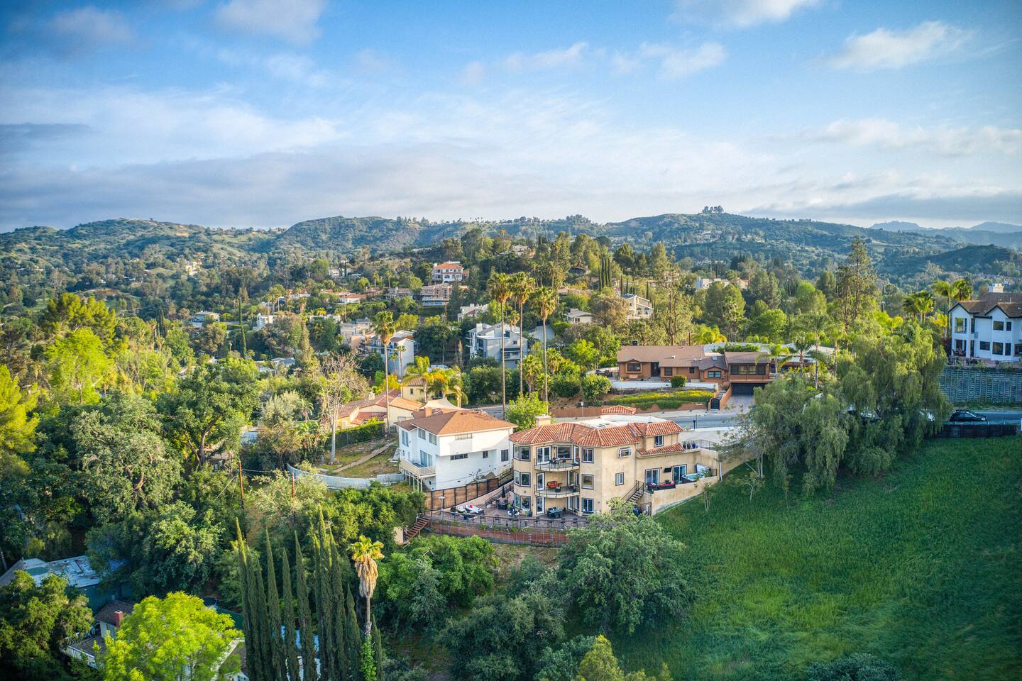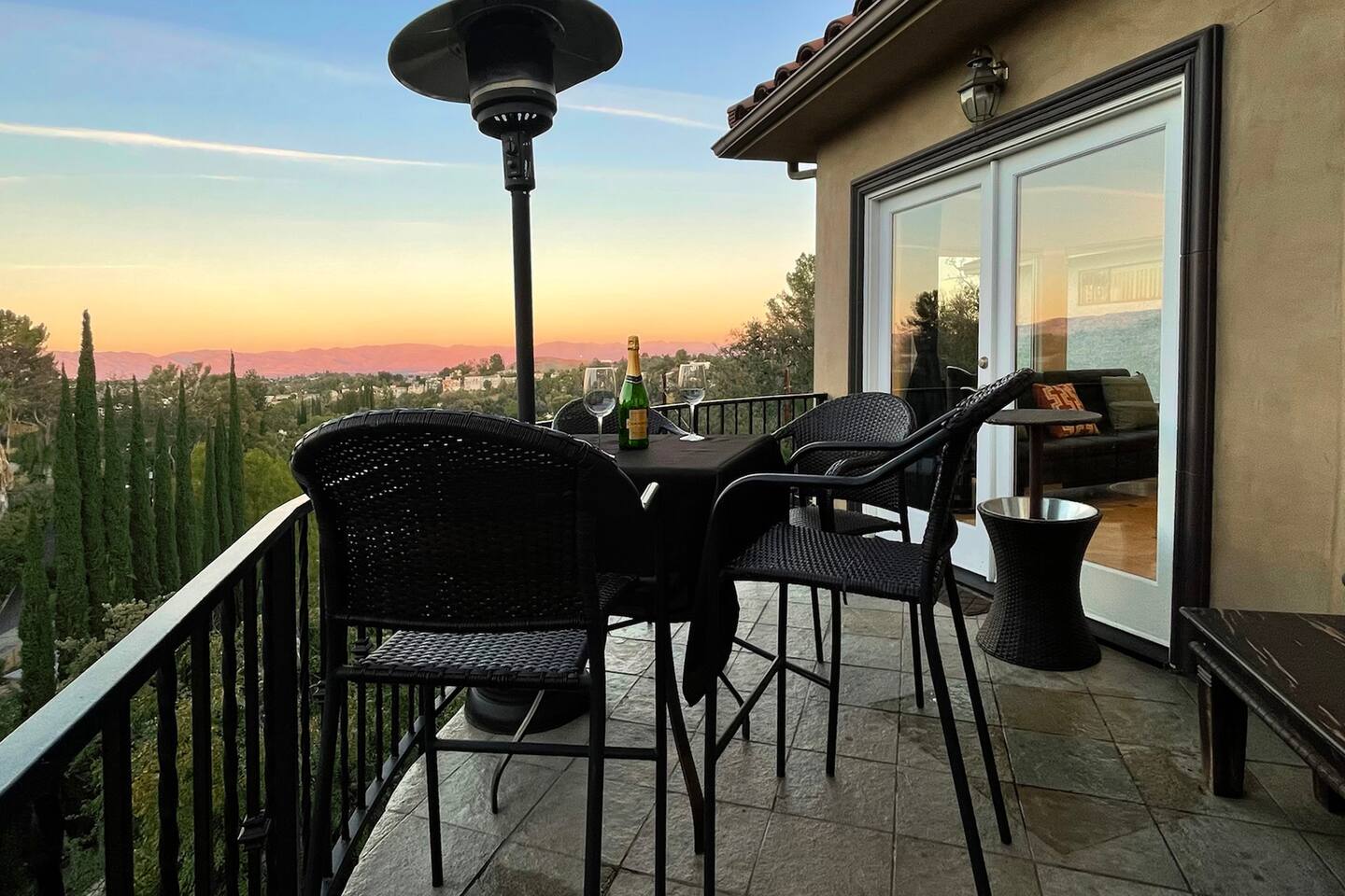 VIEWS-VIEWS!!! Welcome to this Spanish Style luxurious & unique property perched high atop the San Fernando Valley & set amongst the lush mountains of Woodland Hills. Come enjoy endless views and gorgeous sunsets from various decks or the hot tub, throughout this amazing property chosen by celebrities and influencers. The house is fully equipped to be your home-away-from-home. Although shops and restaurants are only a 1 mile drive away, the area feels peaceful and secluded.