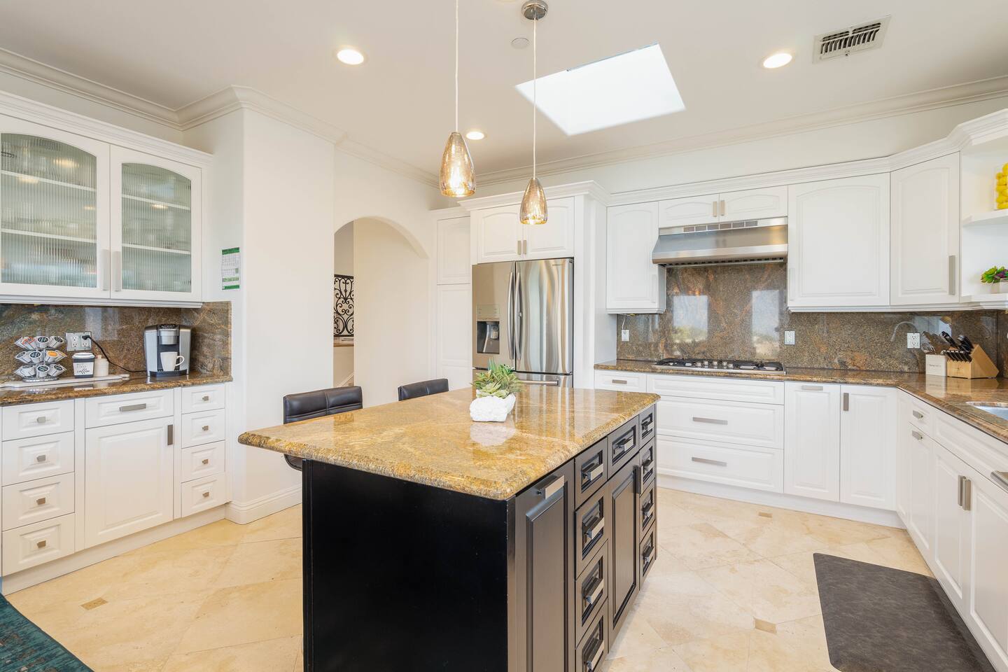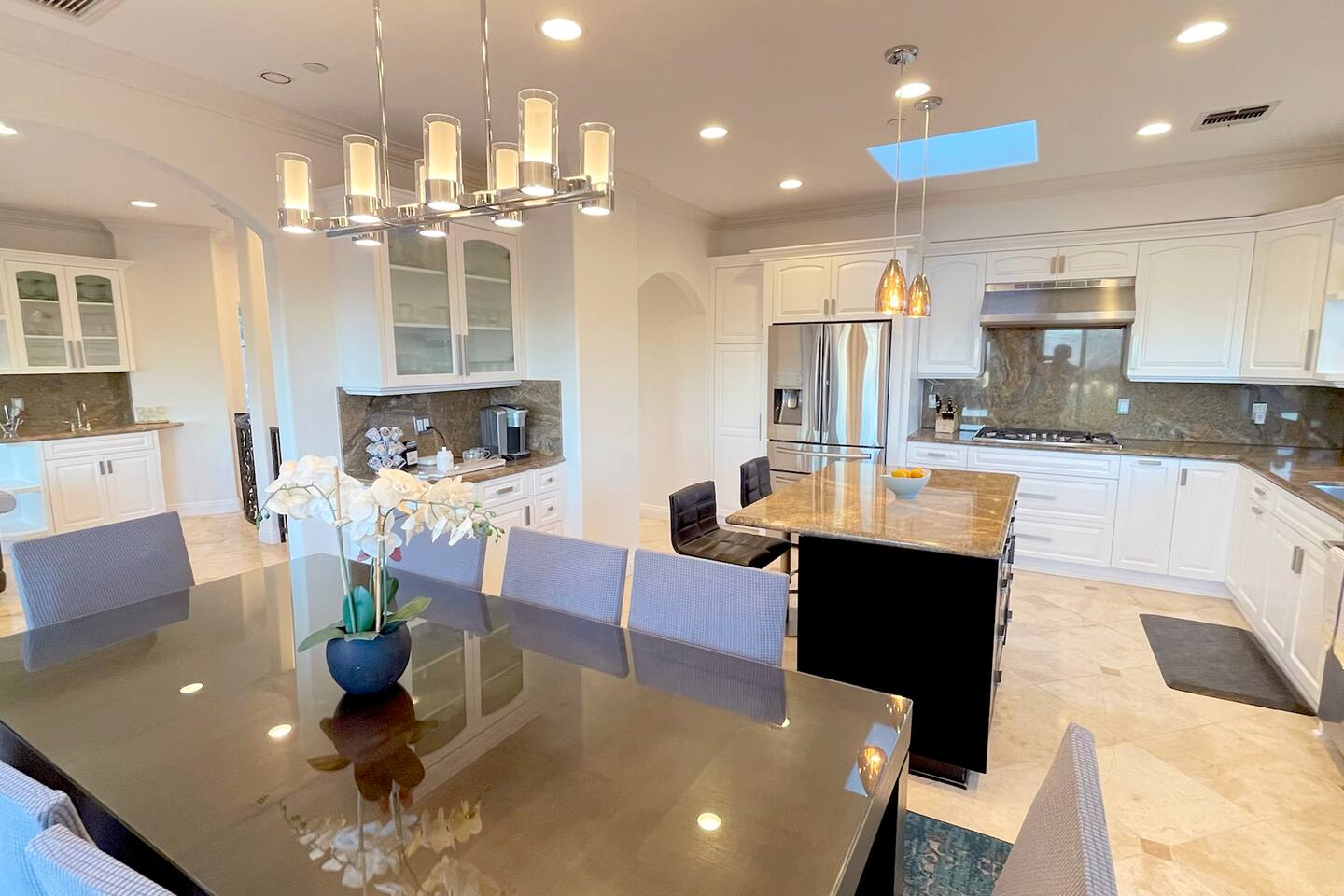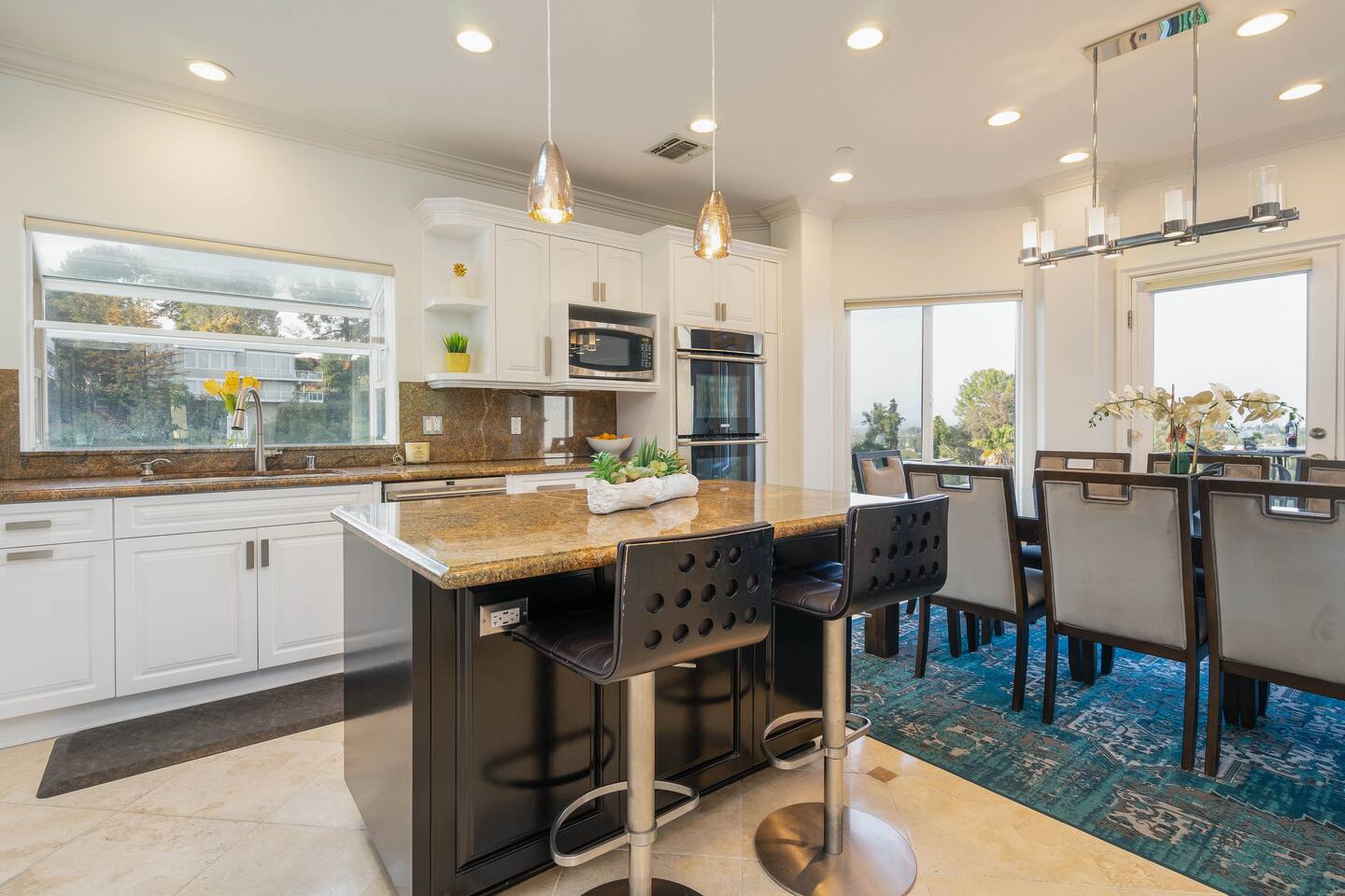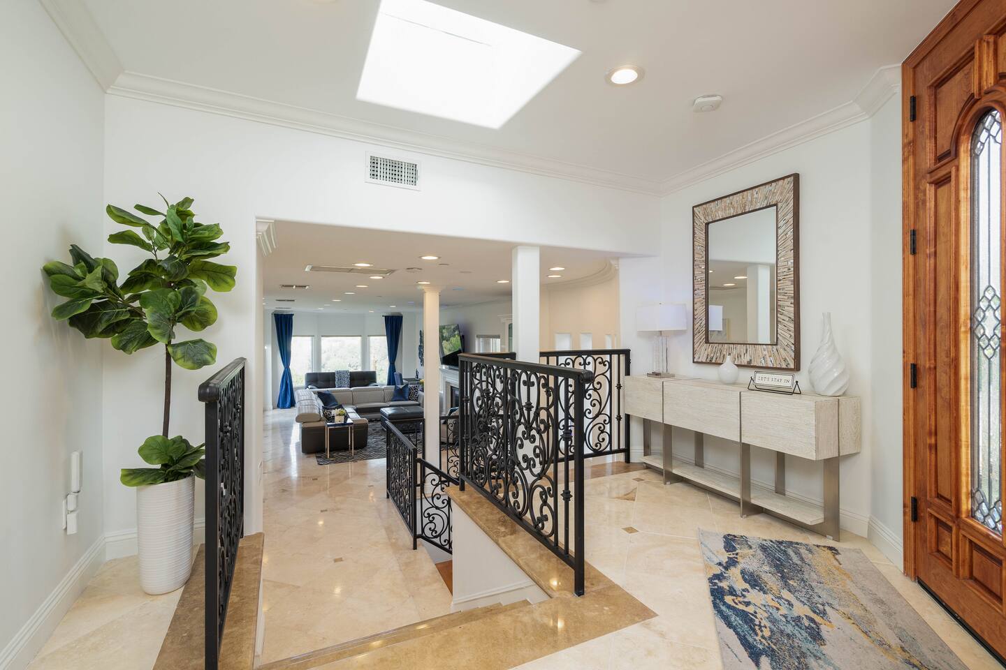 VIEWS-VIEWS!!! Welcome to this Spanish Style luxurious & unique property perched high atop the San Fernando Valley & set amongst the lush mountains of Woodland Hills. Come enjoy endless views and gorgeous sunsets from various decks or the hot tub, throughout this amazing property chosen by celebrities and influencers. The house is fully equipped to be your home-away-from-home. Although shops and restaurants are only a 1 mile drive away, the area feels peaceful and secluded.