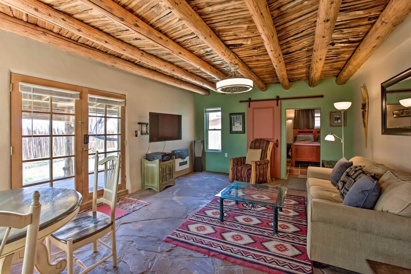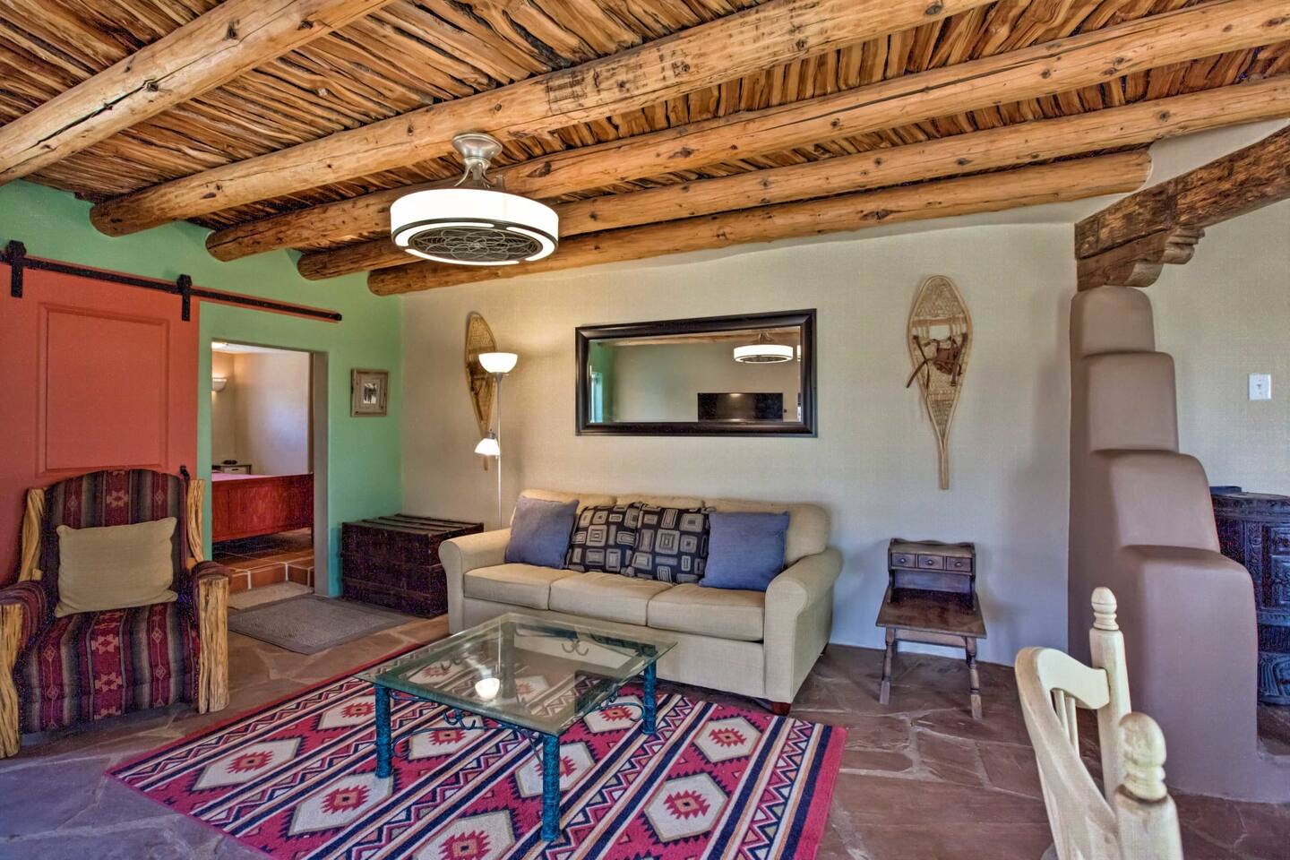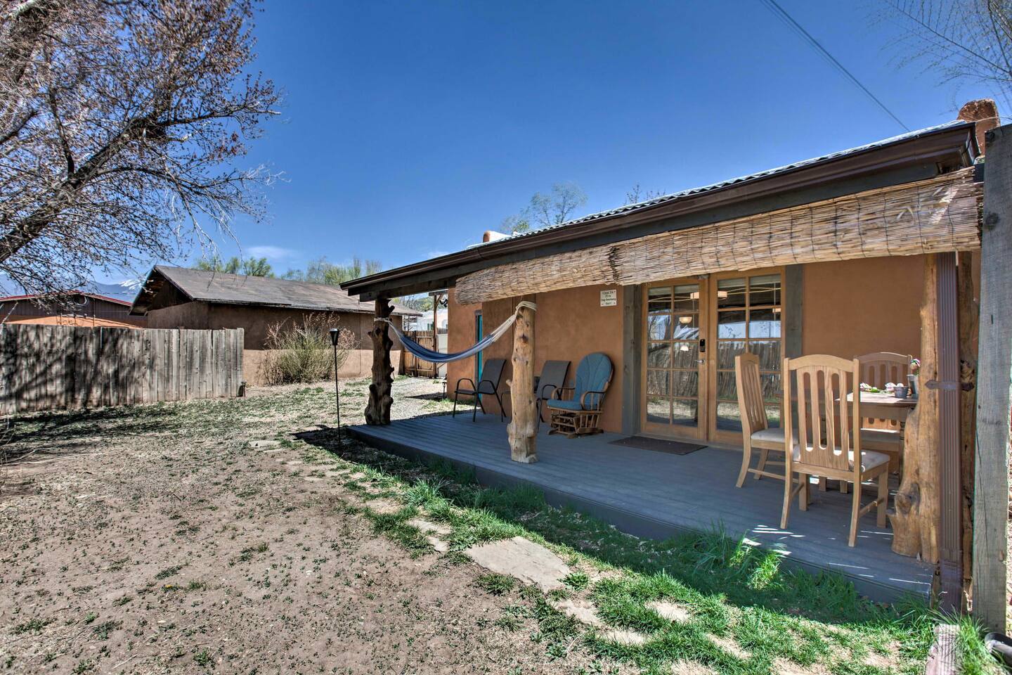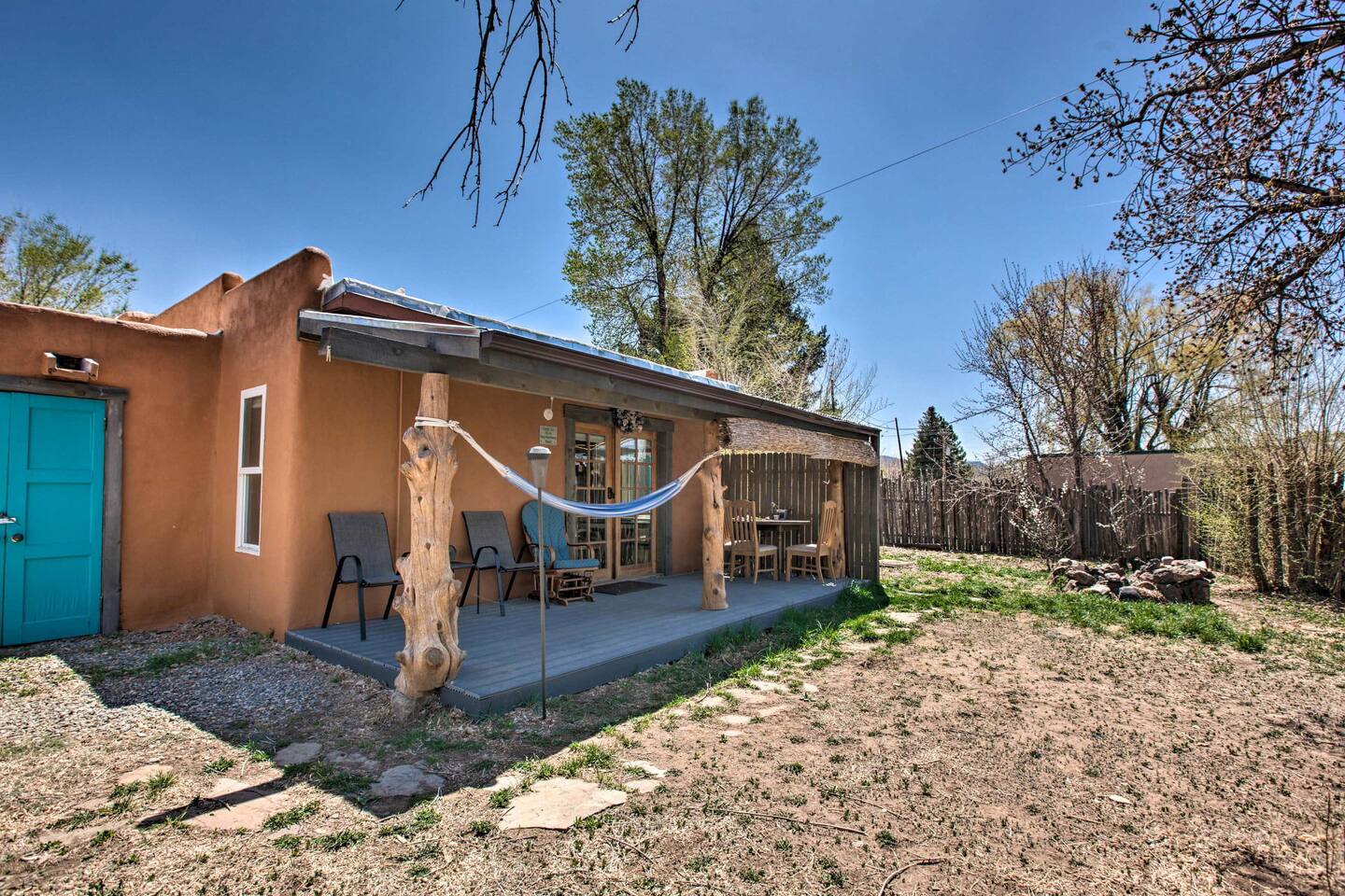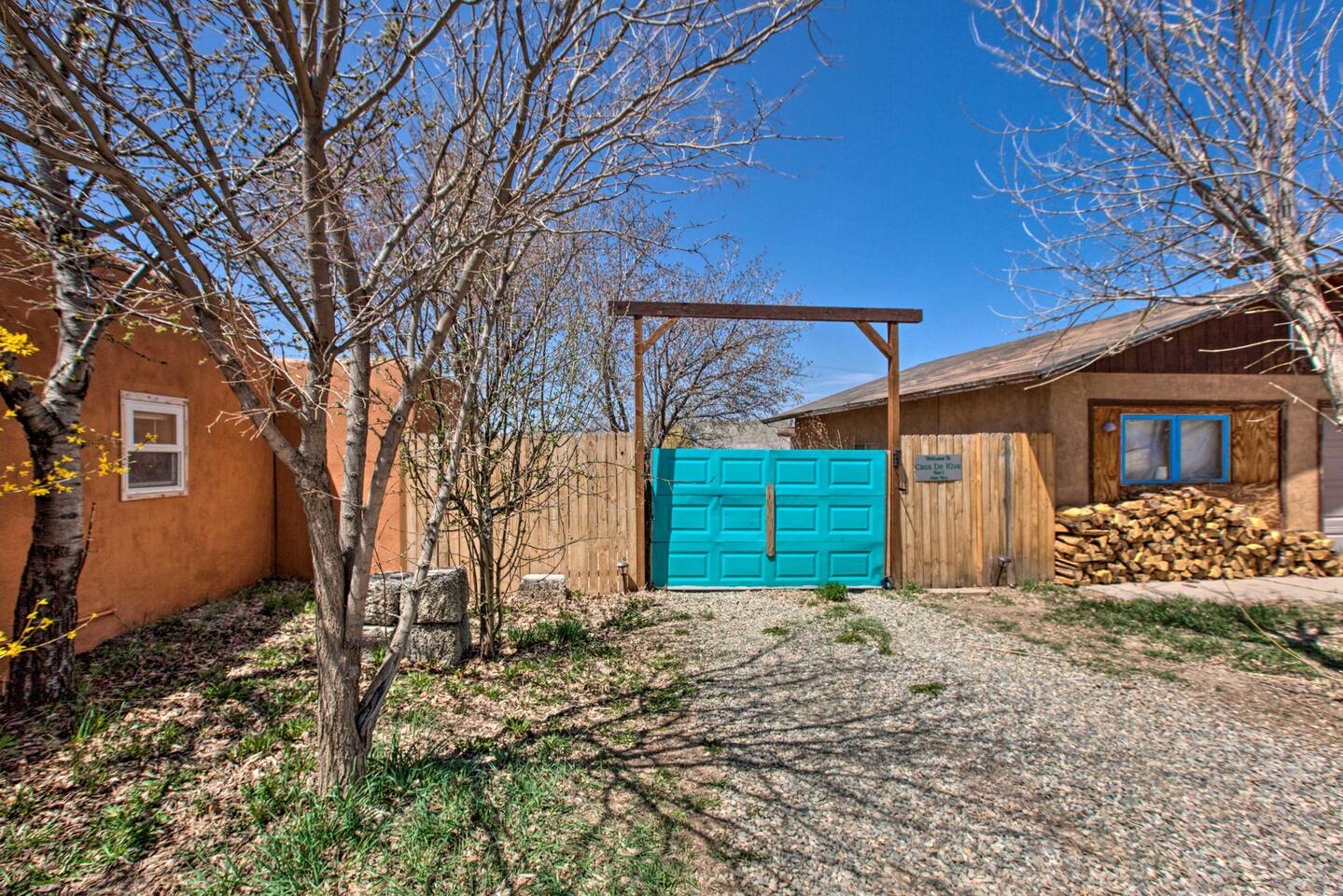 Plan your Taos getaway at this renovated 1-bedroom, 1-bath vacation rental, part of a charming triplex, just 2 miles from Taos Plaza and the Historic District. Featuring a stylish Taosian design, new appliances, a large patio, and a backyard with a hammock, this home offers the perfect retreat. Enjoy a fully equipped kitchen, refreshing cocktails on the patio, and cozy movie nights in the living room.