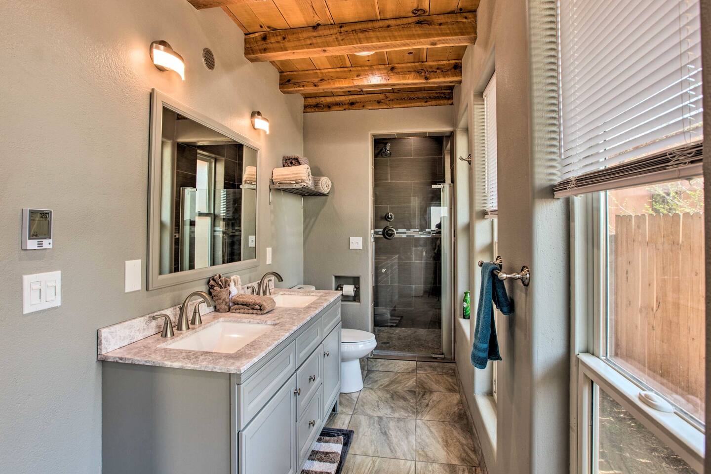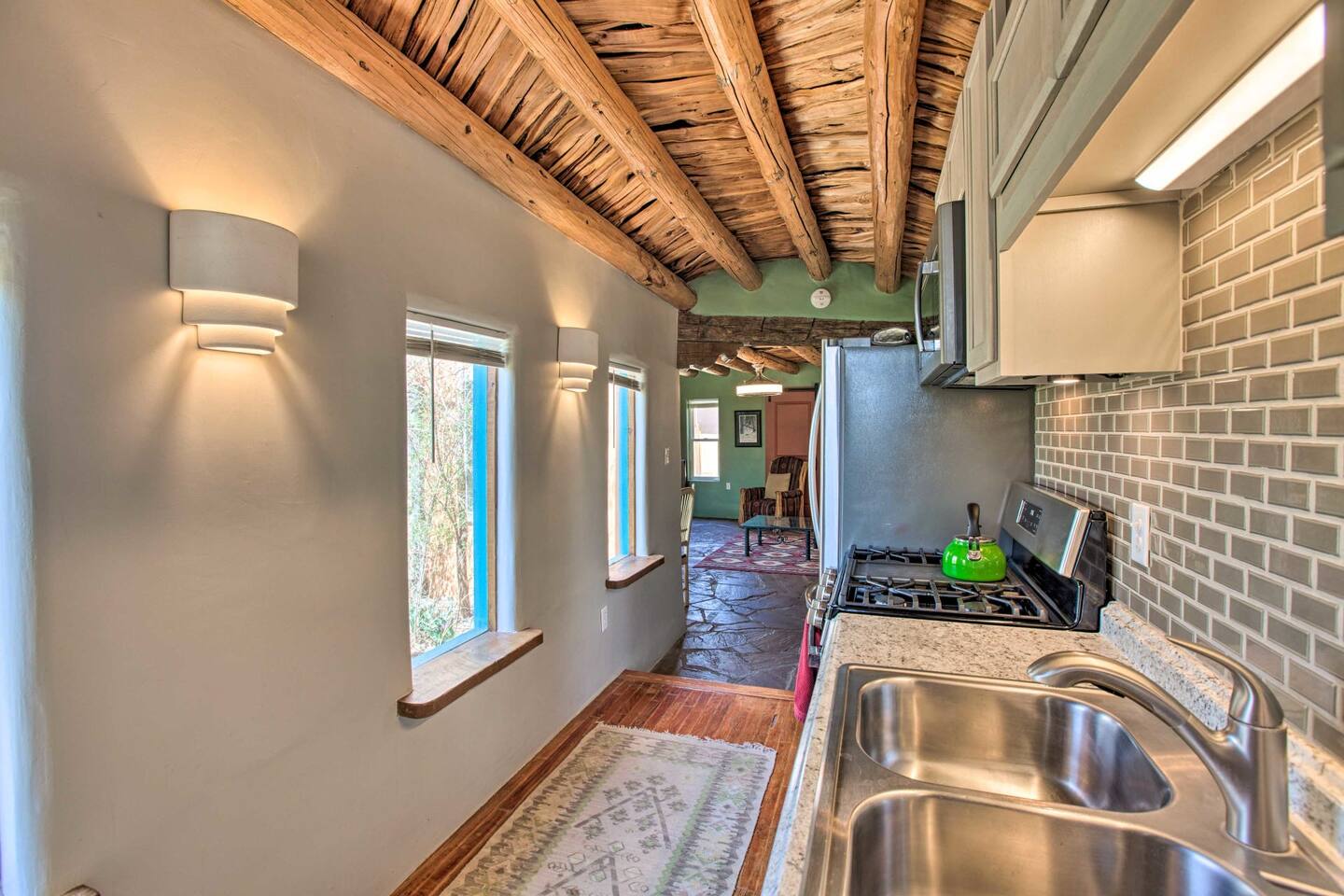 No Air Conditioning: The home does not have air conditioning, but the thick adobe walls and fans help keep the property cool during the warmer months. Shared Backyard: The backyard is shared with other units, so please be mindful of neighbors and maintain privacy and quiet hours. Limited Parking: Parking is limited to one vehicle in the driveway. If you have additional cars, street parking is available on a first-come, first-served basis. No Smoking: This is a smoke-free property. Smoking is not permitted inside or outside on the premises. Kiva Fireplace Use: The kiva fireplace is decorative and not intended for use during your stay.